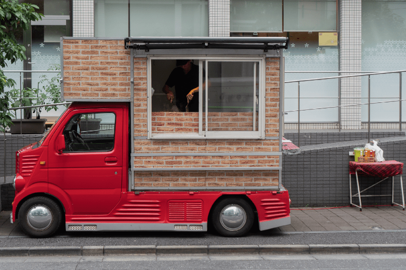 Of course, there are also food trucks, as in most other cities now. But these also have that distinctive boxy and humble sense of discretion (even given the skirts and fake brick adorning this example).