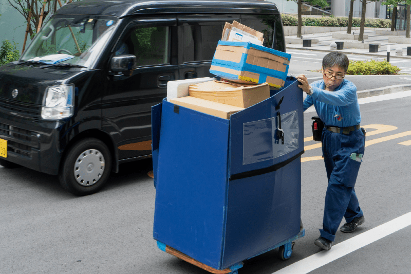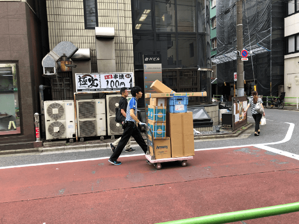 Immediately, the Tokyo difference is clear when we compare how on-street deliveries are handled, particularly with cities under the onslaught of e-commerce, adding to the enormous quantities of goods moving through shops, offices, bars and restaurants in the city. Although these mobility technologies wax and wane, compared to the waves of FedEx, UPS, Amazon etc. trucks now occupying North American and European cities, the last-kilometres of delivery in Tokyo are often handled with simple trolleys, pushed—sometimes with a little tiny-motorised help—by people.