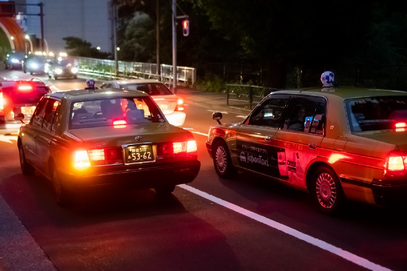 Taxis are not necessarily much smaller than their equivalents elsewhere, although the archetypal Tokyo taxi, the Toyota Comfort Classic, is not a large car at all. The new hybrid Tokyo JPN taxi has both more space and less elegance. What is also obvious immediately is that the both old and new taxis are immaculately maintained and cared-for, polished to within an inch of their life as if there’s a tacitly agreed aesthetic relationship between the shimmering beauty of Tokyo’s built fabric at night and its gleaming reflections in the curved bodies of the taxis that weave through it.